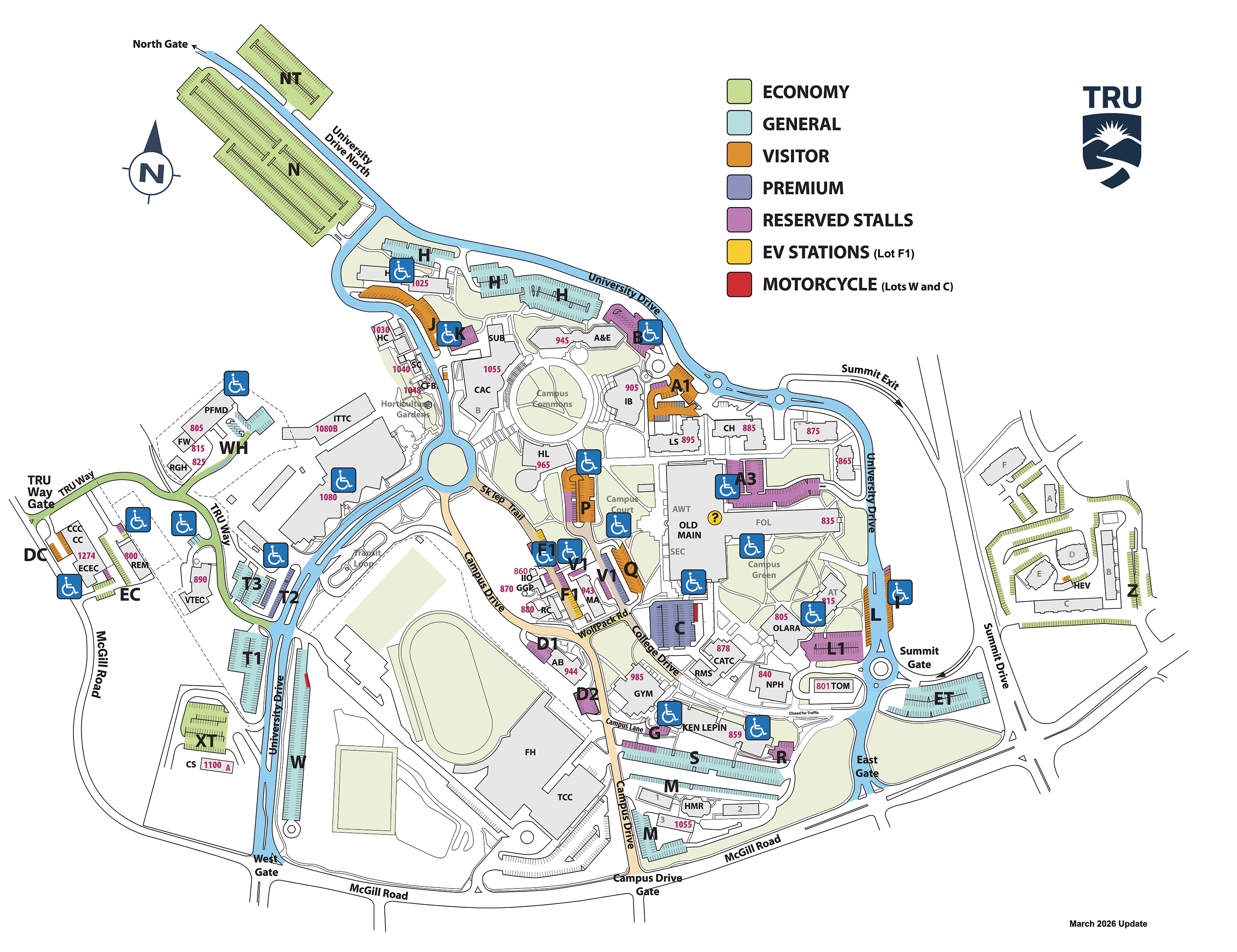 See Parking Terms and Conditions for TRU’s parking policies and regulations.
